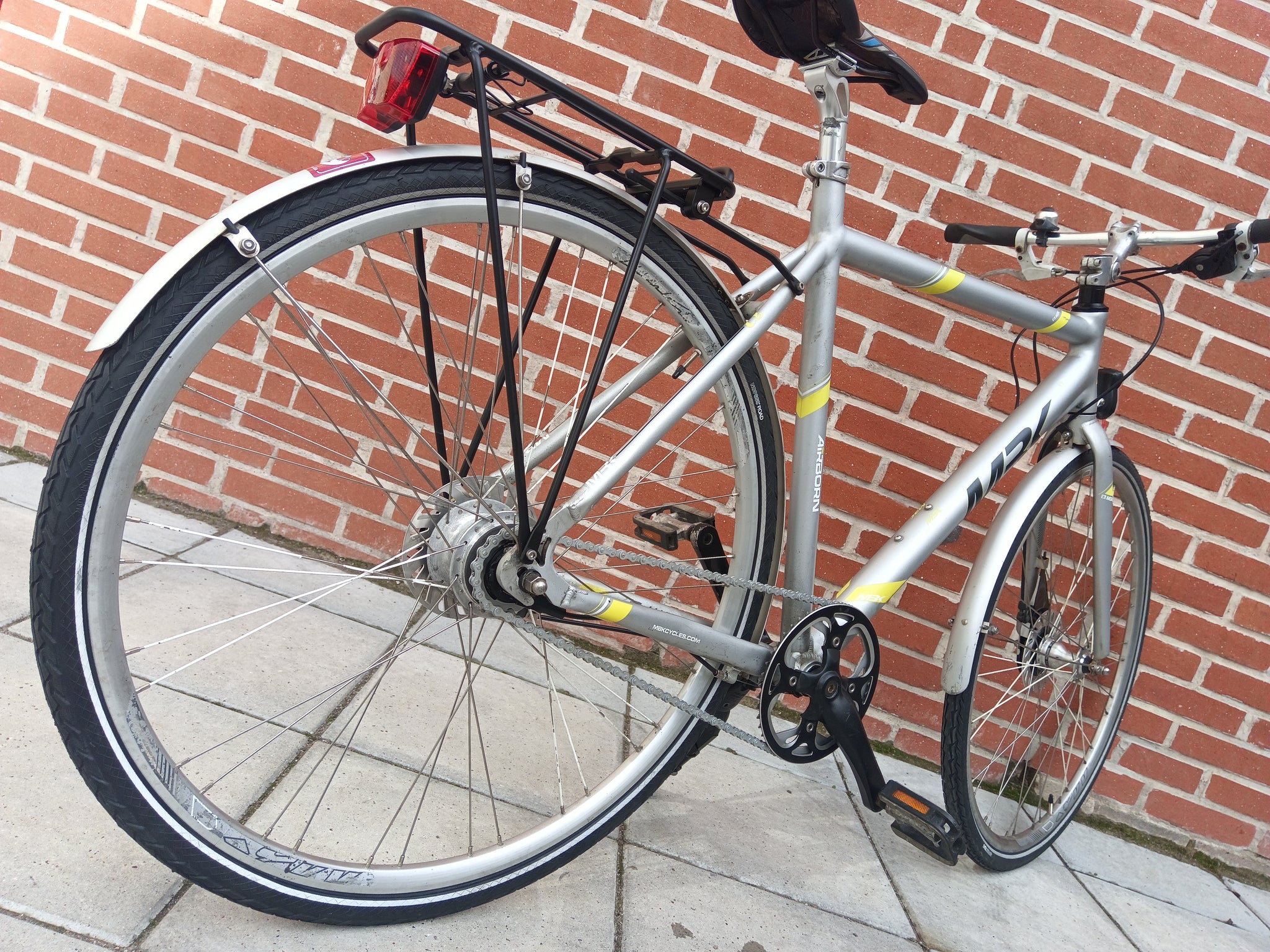 New rust-proof chain and sprocket, crankset, bottom bracket, new roller breaks front and rear, new wires and cables. Lights, kickstand, and carrier fitted. Both tires and tubes replaced. Headset serviced.